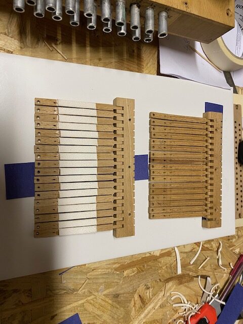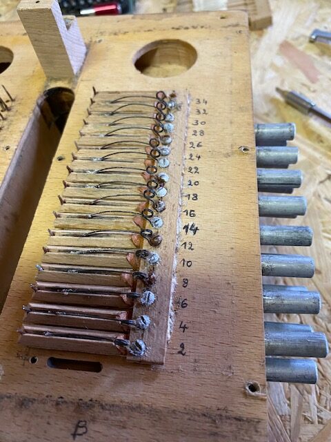 Lors de ma première visite j’ai constaté que l’humidité avait collé les peaux des soupapes et rouillé toutes les parties métalliques. Il fut décidé de restaurer le sommier.